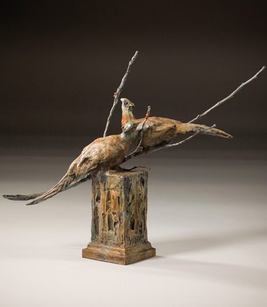 “The themes or ideas expressed in my work present themselves out of the nature of an animal. In this particular sculpture, I took advantage of the Peacock’s ability to evoke visual information through a display of plumage in pursuing a mate or warding off a potential rival.”